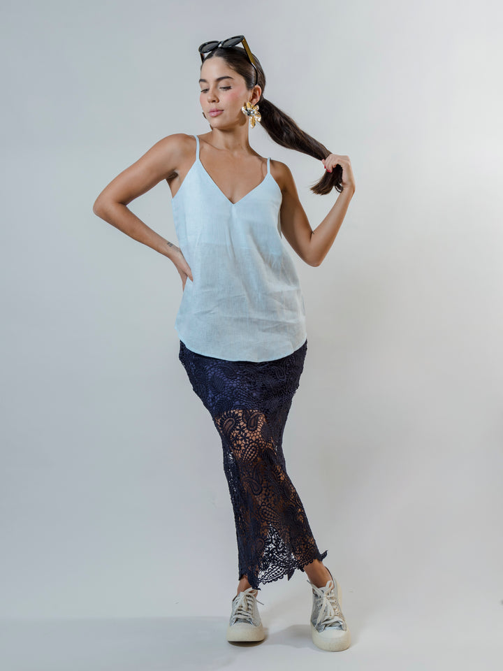Es una pieza versátil que puede combinarse fácilmente con faldas, pantalones o jeans, perfecta para un día casual o una salida veraniega.