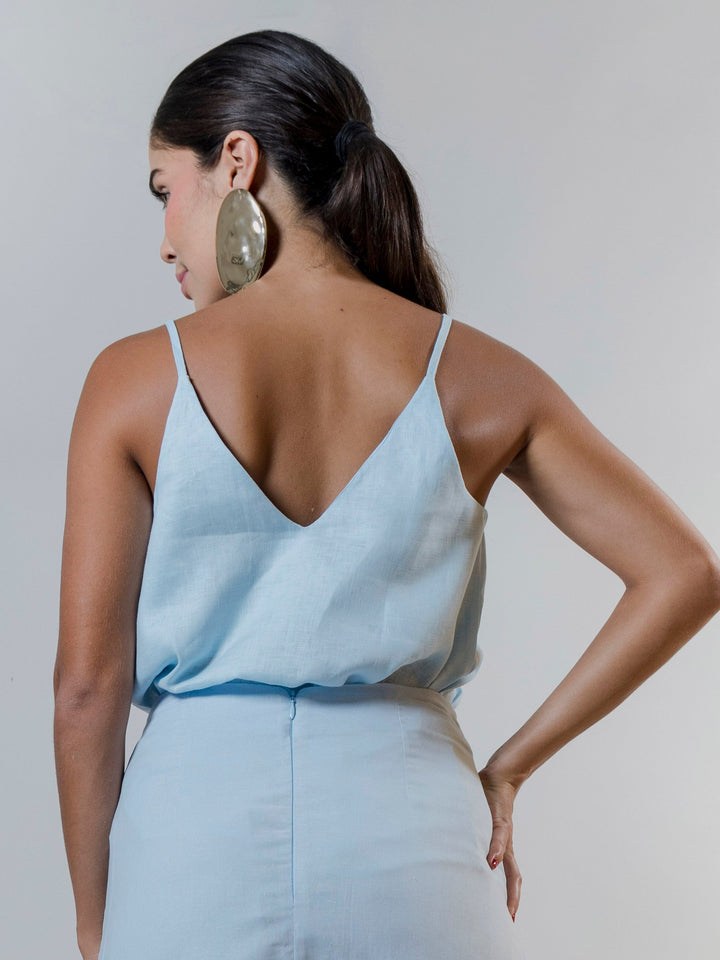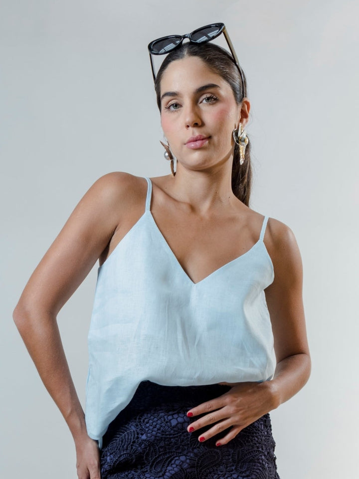 Esta blusa, elaborada en 100% rayón, ofrece una silueta fresca y ligera, ideal para climas cálidos o para un look relajado y sofisticado. Su diseño tipo blusa con tirantes delgados y escote en “V” aporta un toque femenino y delicado, mientras que su caída fluida realza la naturalidad del tejido.