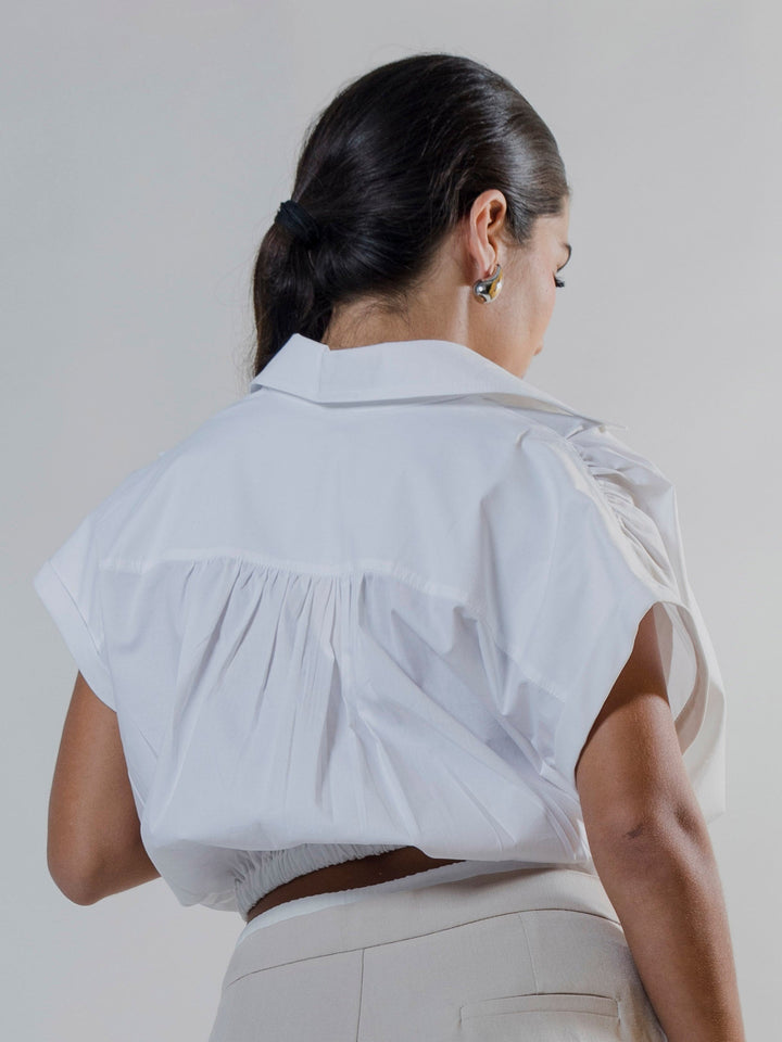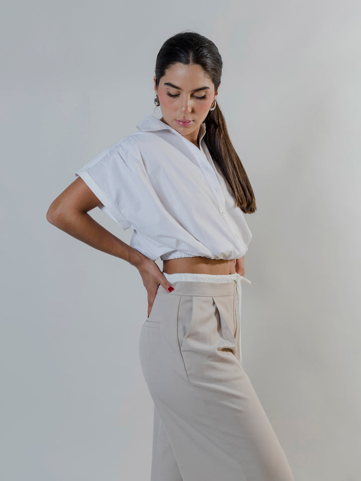 Minimalista, fresca y con un toque moderno: así es nuestra Blusa Cropped Essential, confeccionada en un suave tejido 100% algodón que garantiza comodidad y transpirabilidad. Su diseño corto con cordón en el ruedo realza la silueta sin perder libertad de movimiento, mientras que el cuello camisero clásico y las mangas cortas dobladas añaden un aire desenfadado pero pulido.