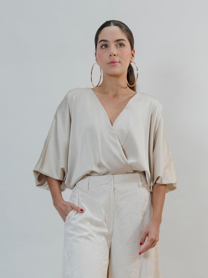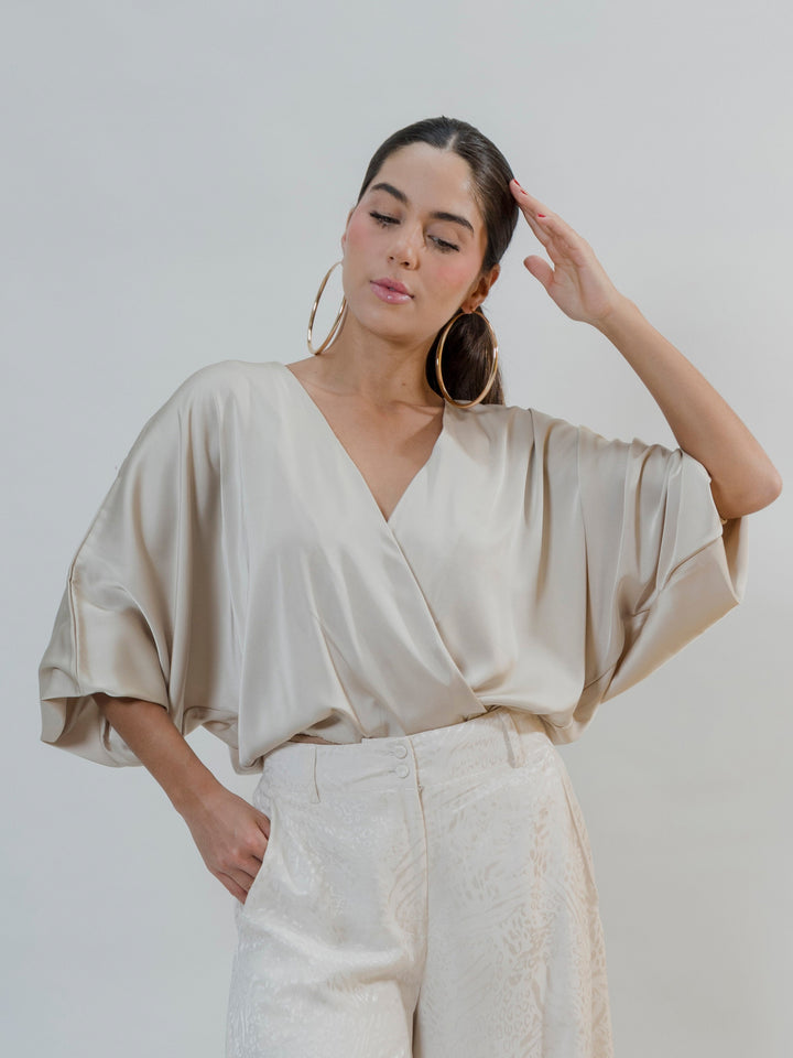 Descubre la elegancia atemporal con nuestro Body Seda Touch, confeccionado en una mezcla premium de 90% poliéster y 10% spandex que ofrece una textura suave tipo seda, caída fluida y elasticidad sutil para un ajuste cómodo y favorecedor. Su diseño cruzado con escote en “V” realza el torso, mientras que las mangas tipo murciélago añaden un toque sofisticado y moderno.