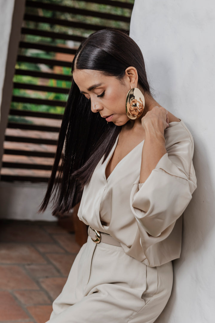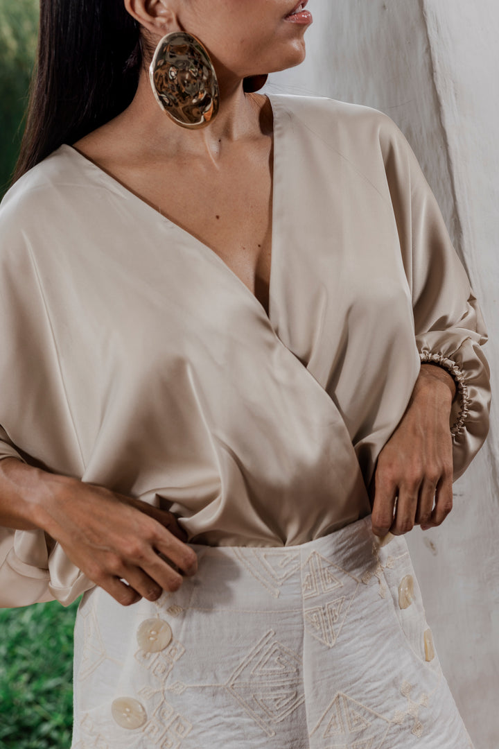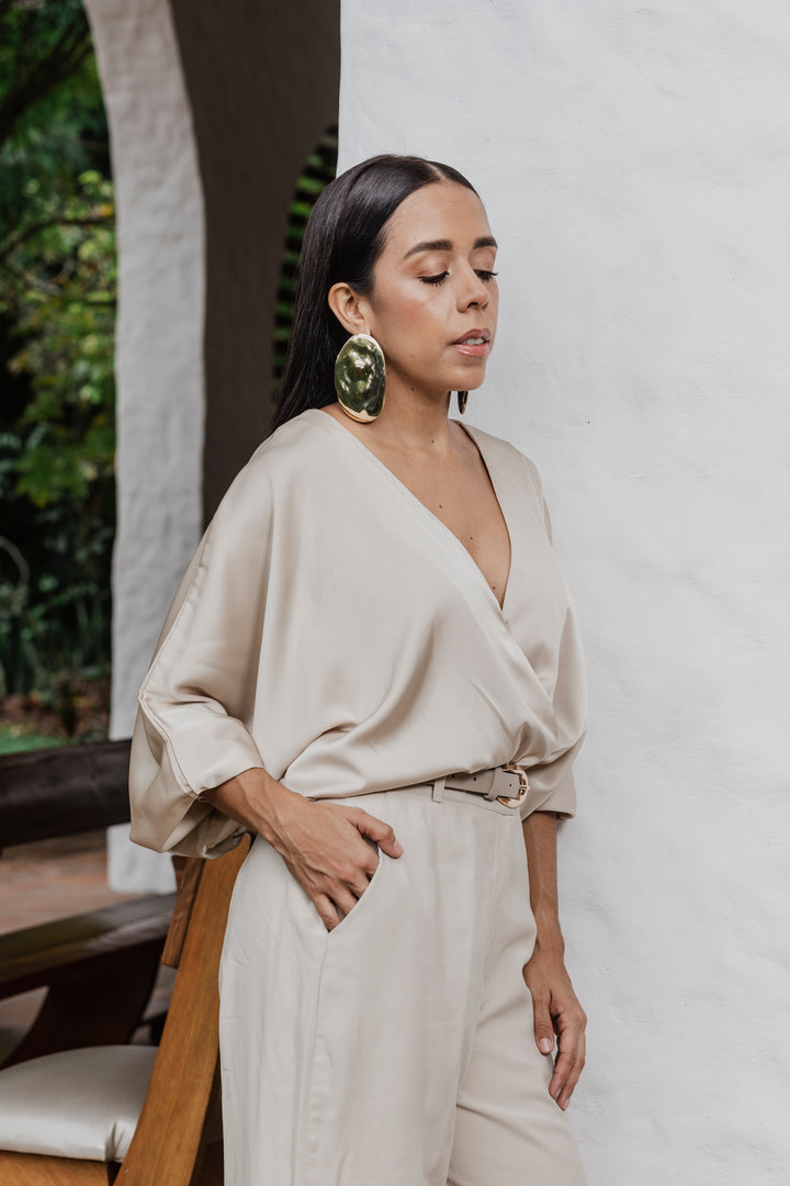 Descubre la elegancia atemporal con nuestro Body Seda Touch, confeccionado en una mezcla premium de 90% poliéster y 10% spandex que ofrece una textura suave tipo seda, caída fluida y elasticidad sutil para un ajuste cómodo y favorecedor. Su diseño cruzado con escote en “V” realza el torso, mientras que las mangas tipo murciélago añaden un toque sofisticado y moderno.