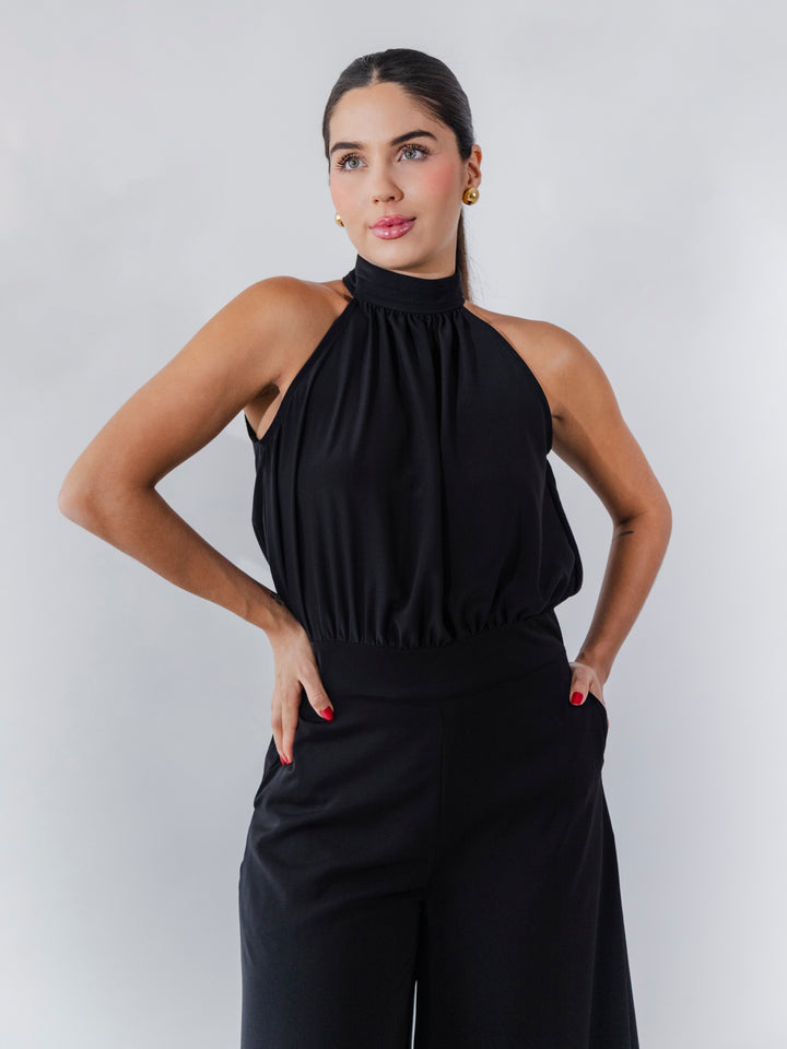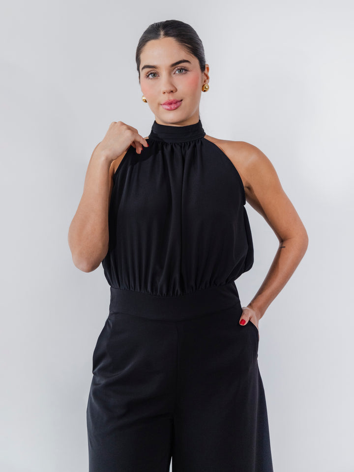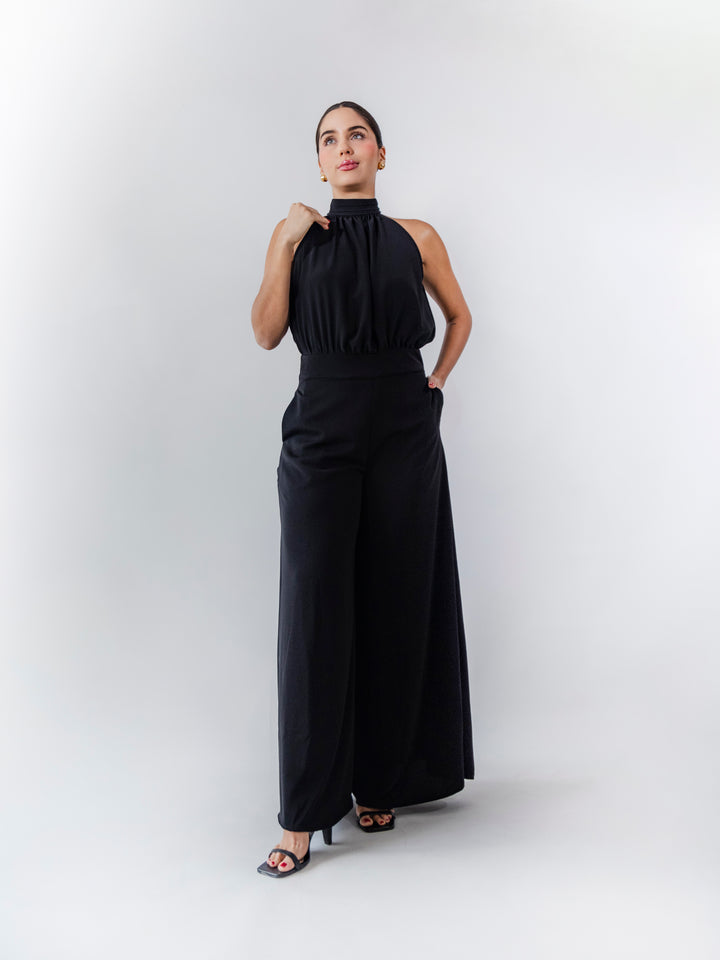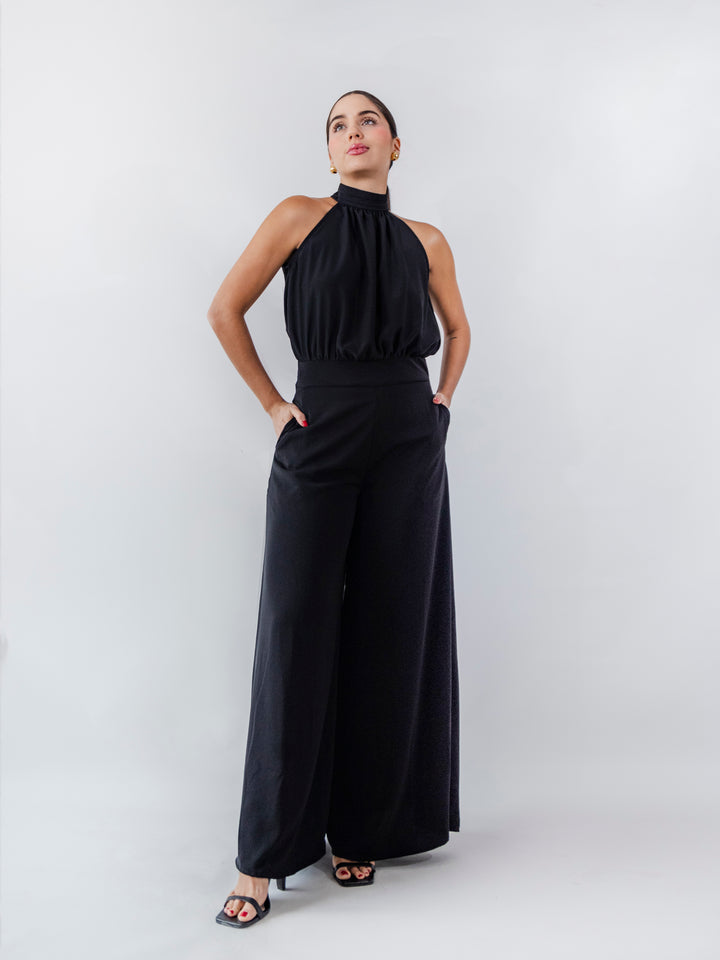 Este enterizo de Zeraj está confeccionado en 100% poliéster con forro, ofreciendo un ajuste sofisticado y elegante. Su diseño destaca por un cuello alto fruncido y una silueta fluida que estiliza la figura. El pantalón de pierna ancha proporciona comodidad y movimiento, mientras que el detalle de bolsillos añade funcionalidad. Ideal para ocasiones especiales o looks formales con un toque moderno y minimalista.