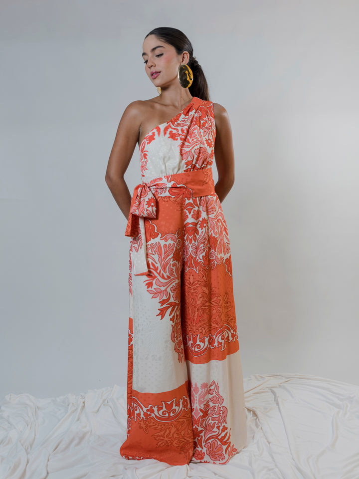 Una pieza única que combina elegancia y frescura con un diseño vibrante. Este enterizo de un solo hombro está confeccionado en 100% rayón viscosa, lo que lo hace ligero, fluido y perfecto para destacar en cualquier ocasión especial o escapada tropical.