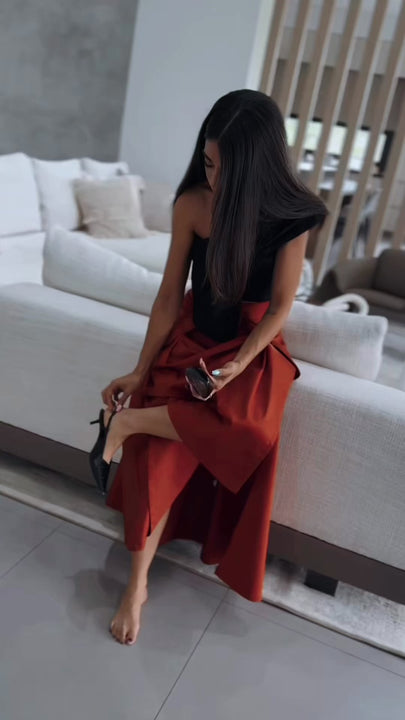 Falda elaborada en una mezcla de 97% algodón y 3% elastómero, un tejido fresco, cómodo y con estructura ideal para mantener la forma. Su diseño destaca por los bolsillos amplios con tapa, la pretina ancha con cinturón forrado y la caída fluida que aporta movimiento y sofisticación. Una prenda versátil y moderna, perfecta para elevar cualquier look.