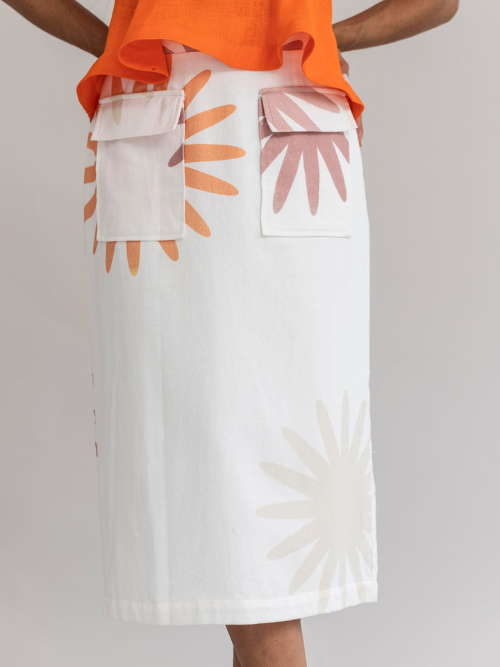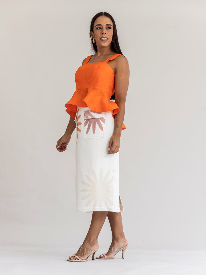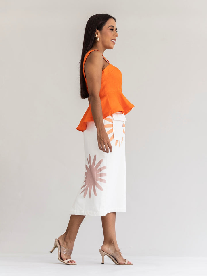 Una prenda llena de frescura y estilo. Su diseño recto con bolsillos frontales tipo cargo y estampado floral en tonos suaves la convierte en una opción moderna y versátil. Confeccionada en una mezcla natural de 85% algodón y 15% lino, ofrece una textura ligera, transpirable y con una caída perfecta, ideal para los días soleados y looks casuales con un toque sofisticado.