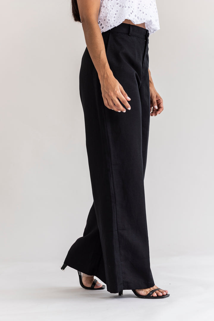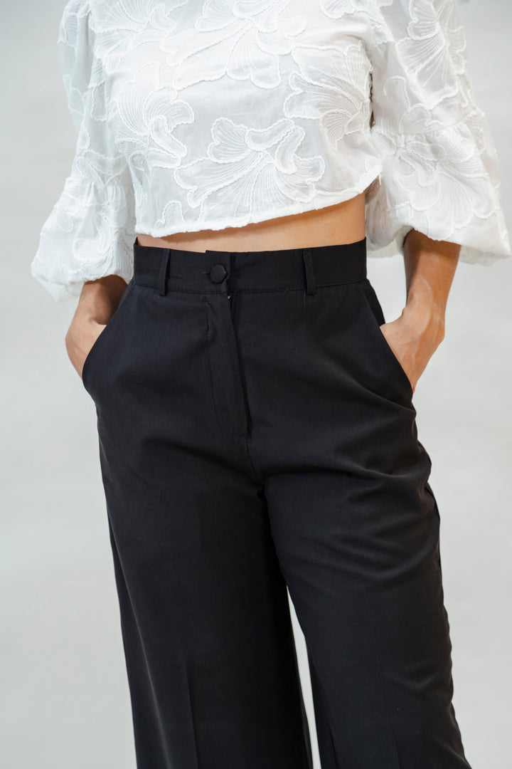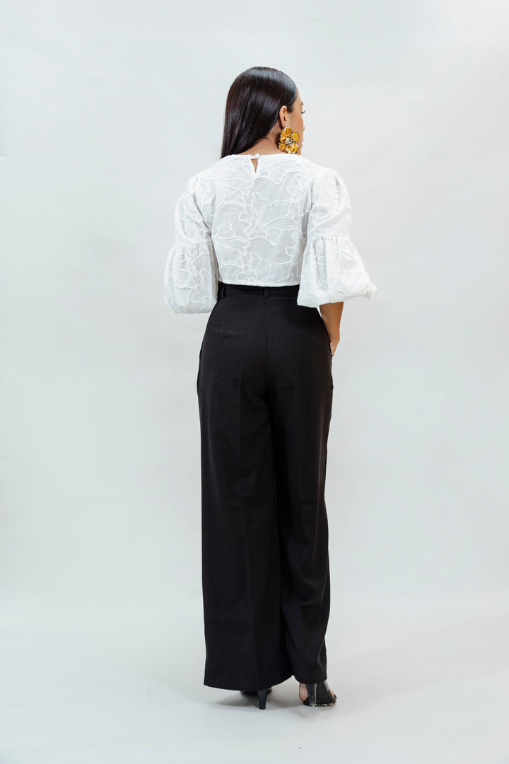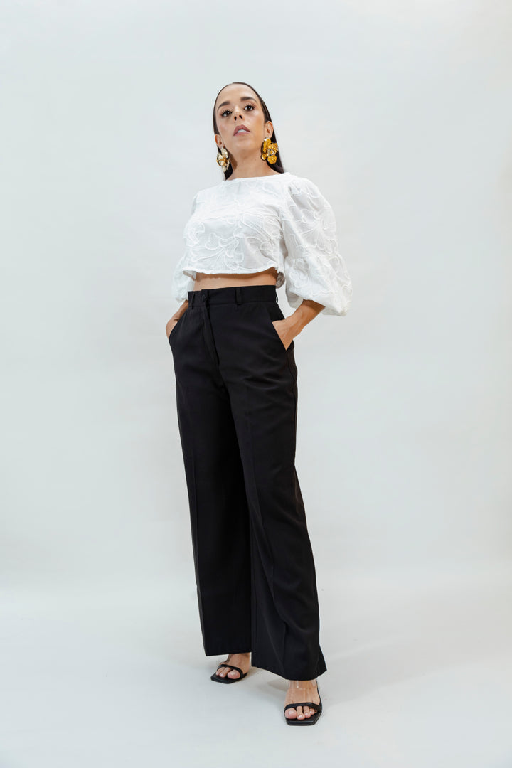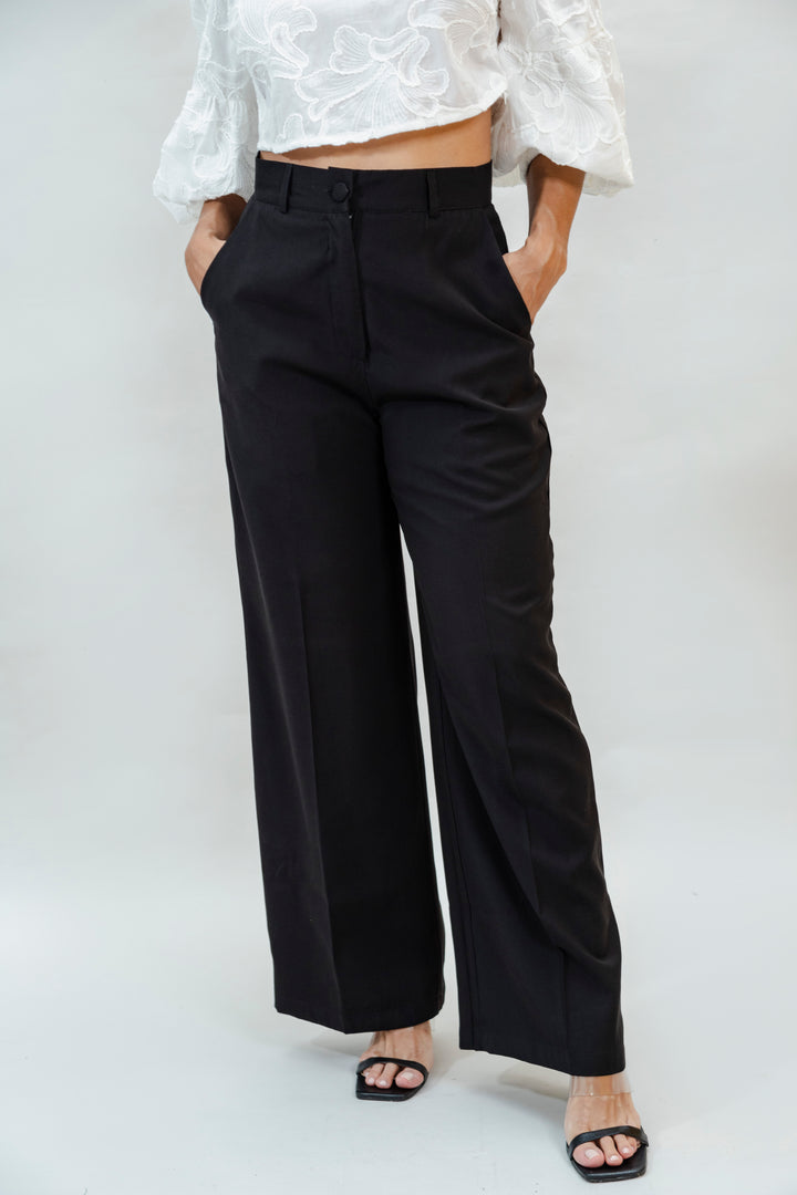 Este pantalón tipo palazzo combina elegancia y comodidad en una silueta versátil. Confeccionado en una mezcla de 89% rayón viscosa y 11% algodón, ofrece un tacto suave, una caída fluida y un ajuste fresco ideal para todo el día. Su diseño de pierna ancha, tiro alto y pretina estructurada lo convierten en una prenda clave para looks sofisticados o casuales.