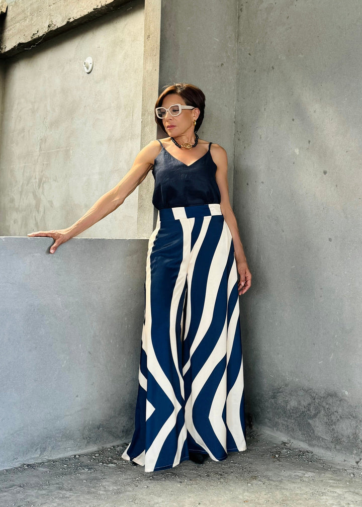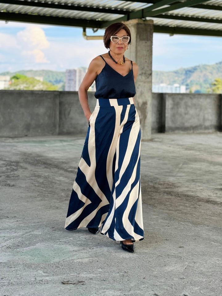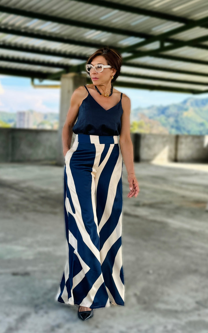 Palazzo de silueta amplia y sofisticada, confeccionado en una mezcla de 98% poliéster y 2% spandex para brindar comodidad y movimiento. Cuenta con forro interno para un mejor ajuste y caída impecable. Ideal para un look elegante y versátil.