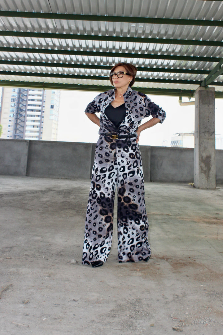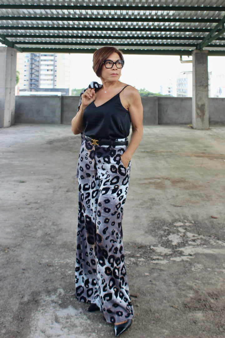 Pantalón de corte recto y cintura alta, confeccionado en 100% rayón, un tejido ligero y con caída fluida que aporta comodidad y frescura. Su estampado animal print le otorga un estilo audaz y sofisticado, ideal para looks versátiles. Cuenta con forro interno para mayor confort y mejor ajuste. Perfecto para combinar con blusas neutras o en conjunto con la camisa a juego para un outfit impactante.