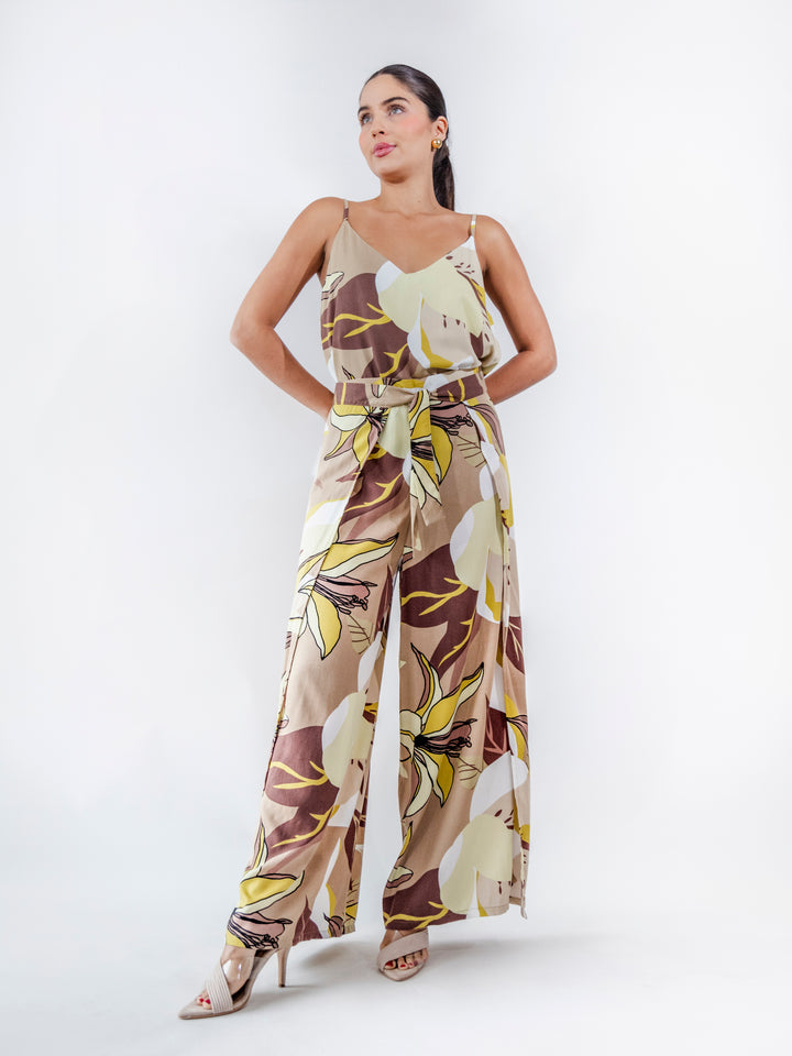Su estampado exclusivo en tonos tierra y amarillo evoca elegancia y modernidad, mientras que su amarre ajustable en la cintura permite un ajuste personalizado. Ideal para quienes buscan una prenda versátil, cómoda y con un toque de distinción.